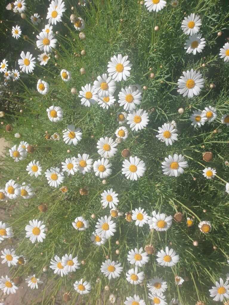 L'anthémis (ou Marguerite des Canaries) est une plante vivace à fleurs de la famille des Asteraceae, appréciée pour sa floraison ininterrompue du printemps à l'automne. Elle forme de petits arbustes buissonnants de 30 à 80 cm, souvent cultivés en pot ou bordure, aimant le plein soleil, une terre drainée et craignant le gel (généralement annuel ou protégé)