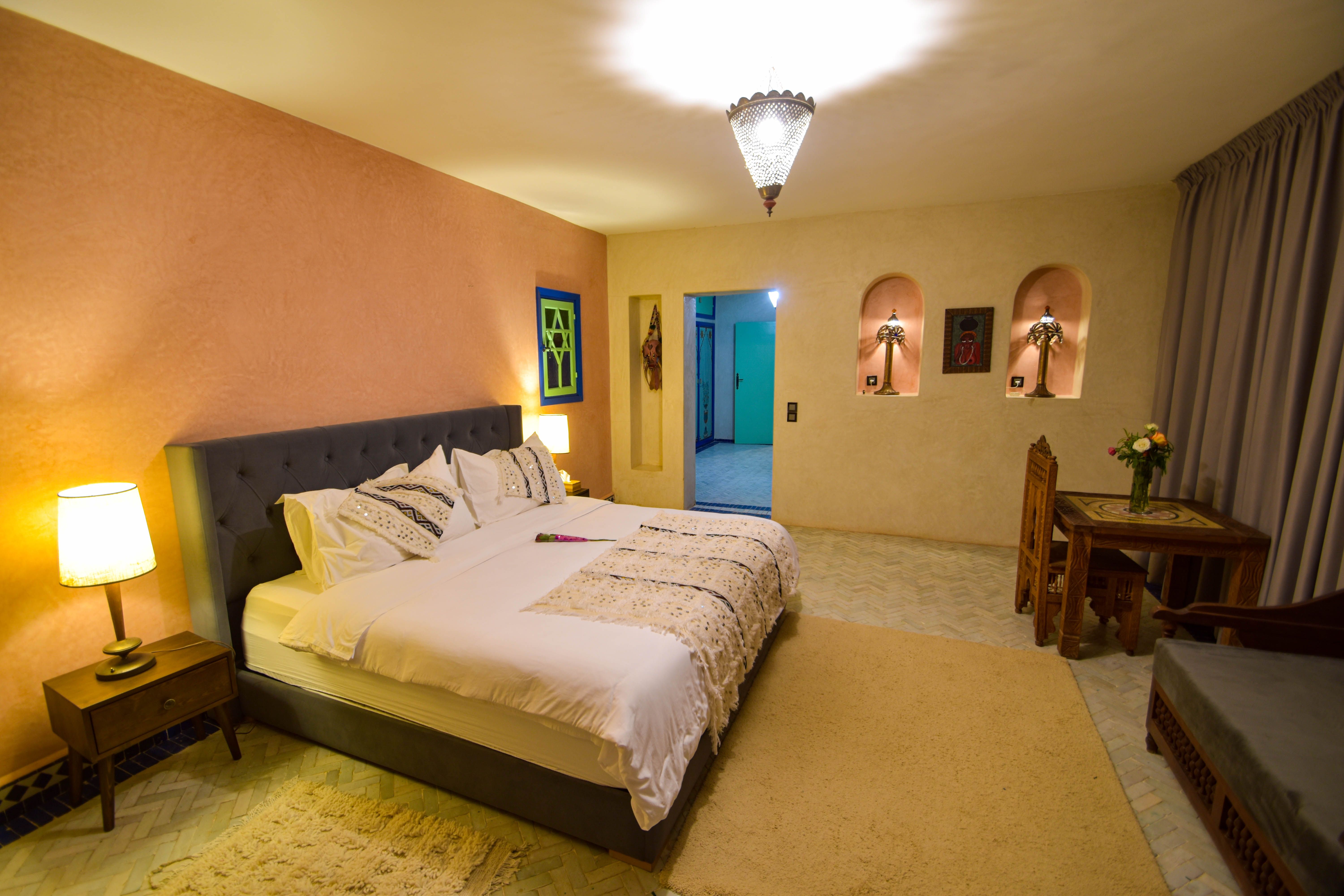 Bluegreen SuitesThis Suite at the first floor of the lodge, offers a king size bed with a breathtaking view on the Atlas Mountains. Enjoy the romantic warmth of the chimney fire and the breakfast at the two private terraces.185 CHF per night300